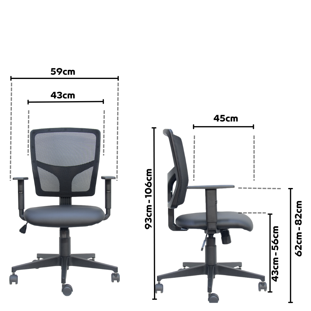 Seu encosto foi desenvolvido em tela de boa resistência, trazendo maior conforto nos longos períodos de utilização. Este mesmo encosto possui regulagem de inclinação junto com o assento.